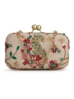Home W_Bags Clutches Off White & Gold Embroidered Box Clutches For Girls and womens(Multicolor)