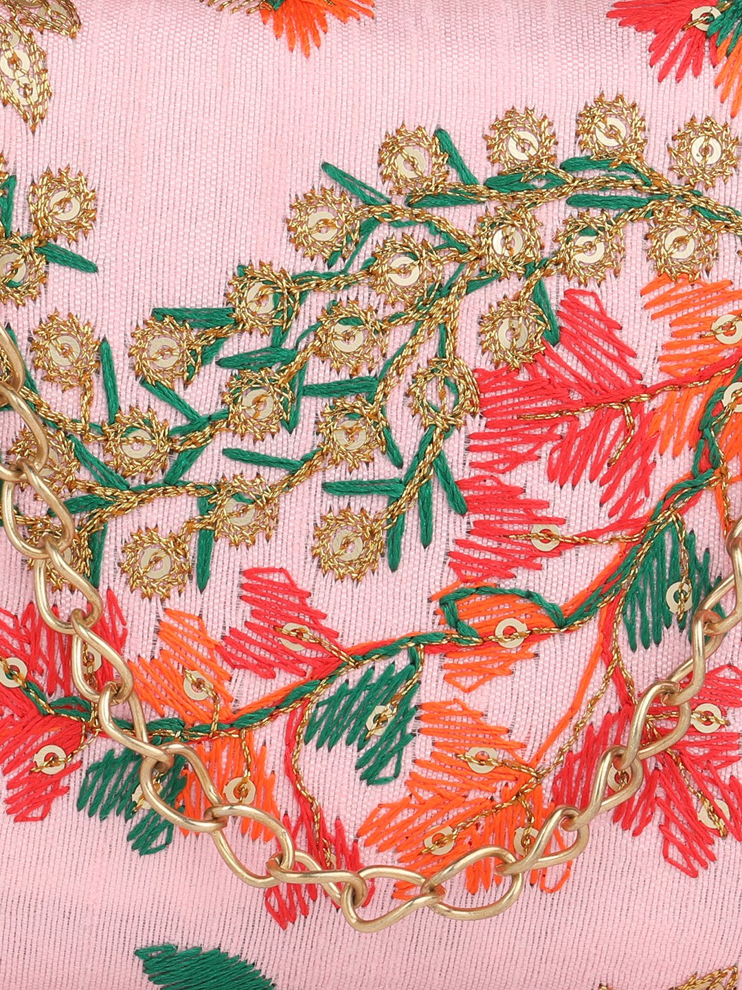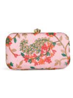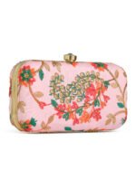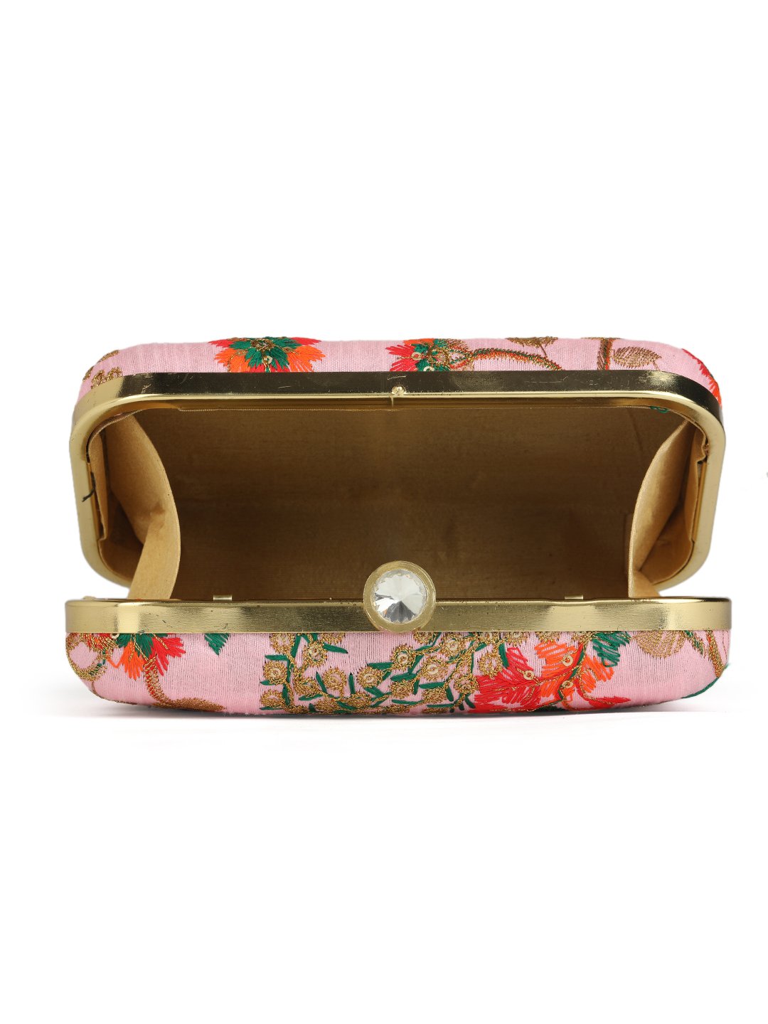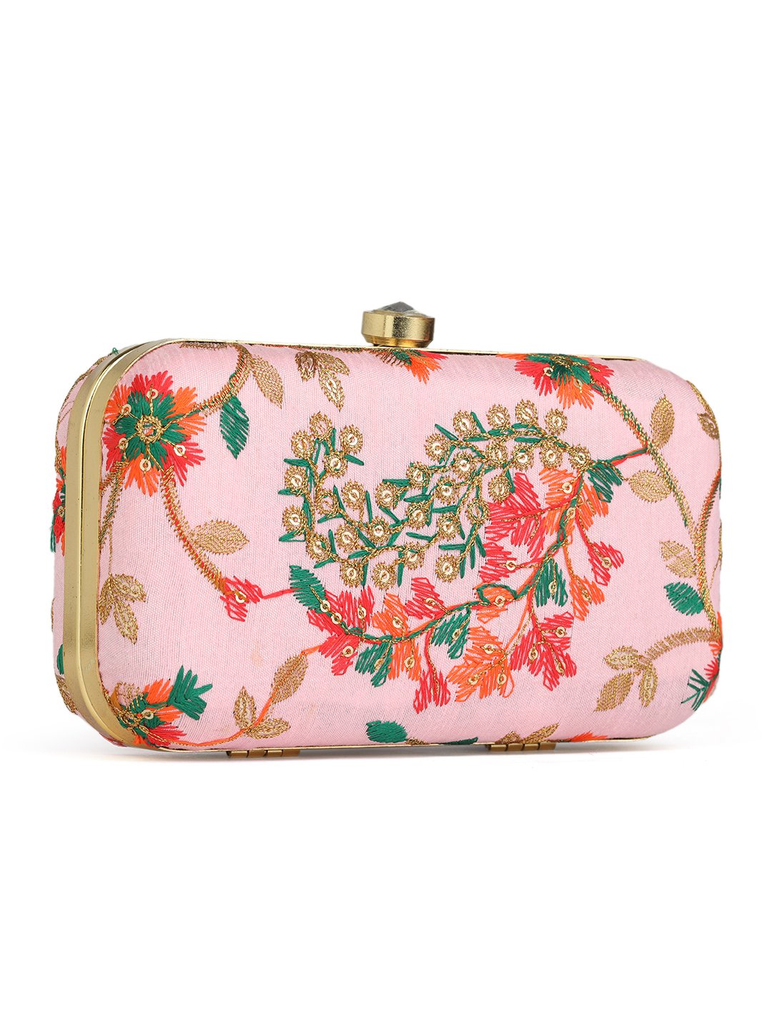 Pink & Goldembroidered box clutches Has shoulder strap, 1 main compartment with twist closure